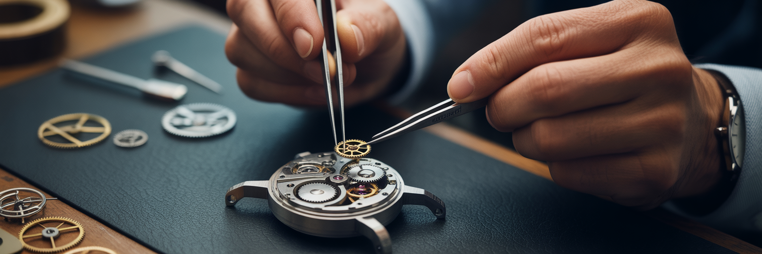 Watchmaker assembling gears representing data.